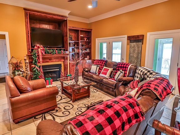 Beautiful custom built brick home (2005) with pool in convenient location. Nice landscaping and circle driveway and double garage welcome you home to this modern 3/2 split bedroom open living plan with wonderful built-ins, fireplace, great kitchen with island and custom cabinets, large master suite with jacuzzi tub and separate shower, spacious guest room and guest bath, huge sunroom with hot tub, pool (new liner being installed) with water feature, plus 2 large storage rooms in privacy fenced backyard. Call for a tour! (Soon to be painted or will offer paint allowance)