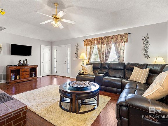 Tucked away in quiet, well-maintained neighborhoods with no HOA, this custom-built, ranch-style home offers the charm of small-town living with the convenience of and access to everything Foley offers. Built in 1995, this thoughtfully 3-bedroom, 2-bathroom home immediately greets you with its classic brick exterior and inviting curb appeal. Step inside, and you're welcomed into a warm and cozy living room with raised ceilings that add a sense of space and airiness, and a wood-burning fireplace becomes the centerpiece for those cozy evenings at home. Flowing seamlessly from the living room is a spacious kitchen and dining room combo ideal for hosting social gatherings, holiday meals, or casual weekend brunches. The kitchen offers ample cabinetry, granite countertops, and stainless steel appliances. This layout makes entertaining both easy and enjoyable. Off the dining room, step into a sizeable climate-controlled sunroom, bathed in natural light and overlooking the expansive backyard. Use it as a second living space, reading nook, or hobby room. Outdoors, the backyard is a true oasis for entertaining and relaxation. Enjoy year-round gatherings under the powered and covered pergola, with seating. The house has been lovingly maintained with key upgrades, including a durable metal roof replaced in 2021 and a new HVAC system installed in 2021, ensuring comfort and efficiency for years. Living in this charming Foley neighborhood means you're just minutes away from all the best local conveniences that Foley offers plus you're only 30 minutes away from the sugar-white sands of Gulf Shores, making weekend escapes a regular part of your life. Buyer to verify all information during due diligence.