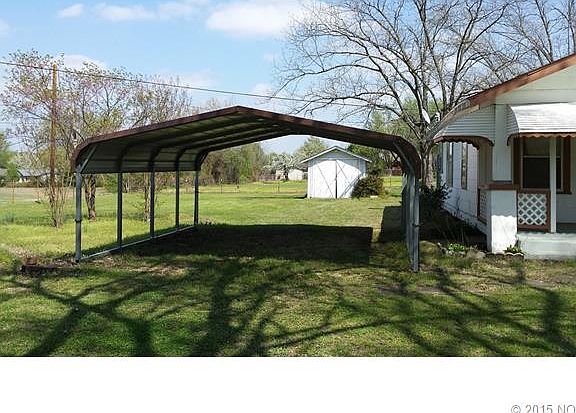 Almost 1 acre with this cute country home! Covered front porch, 2 bedrooms, 1 bath, 2 living areas, double carport, single garage and large storage building Partially fenced, with beautiful pecan and apple trees. PERFECT LOCATION!