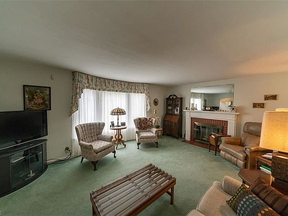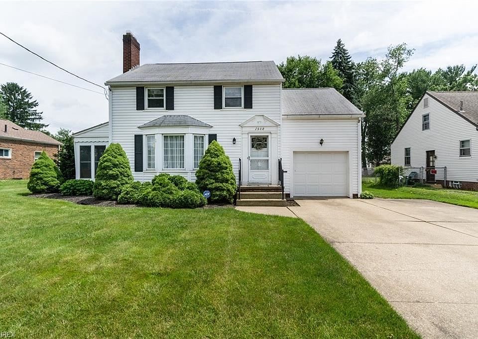 Call or Text listing agent Darcy Friel at 330.324.2264 for a private showing. Well maintained two story with charming foyer entry with curved doorways. Formal living room with bowed front picture window and brick wood-burning fireplace. The living room opens to the dining room with a ceiling fan and matching custom shears. Doorway off of the dining room leads to a sun room. Master bedroom with a walk-in closet. Beautifully updated main bathroom with new walk-in shower and surround, built-in storage, laundry chute, and new vanity with cultured marble top. Two additiobnal bedrooms are spacious with ample closet space. Knotty pine rec room with second fireplace, some glass block windows and half bath in basement with glazed tile walls. There is an attached one car garage and oversized concrete drive for additional parking. Every room bedroom and hall have oak hardwood floors under the carpets. This home feels so much larger inside!! Great location and opportunity!