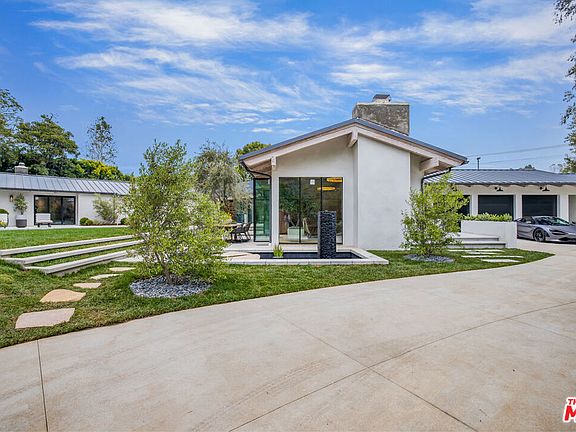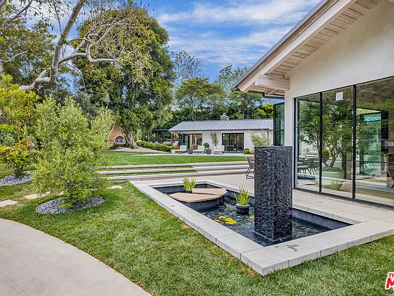 Welcome to this exquisite Scandinavian Ranch, located in the highly sought-after Sullivan Canyon. Upon entering the private double gates, you will be greeted by lushly landscaped grounds that will transport you into a tranquil oasis. This one-story masterpiece has been flawlessly reimagined from top to bottom and boasts four spacious bedrooms, six beautifully designed bathrooms, custom millwork, floor to ceiling doors, vaulted ceilings, and white oak floors throughout. You will be captivated by the open floor plan, featuring a large living room, entertainers bar, formal dining, family room, and secondary dining that all open to the outdoors, creating a perfect space for hosting large gatherings!The gourmet kitchen is flooded with natural light and is equipped with top-of-the-line appliances, large island, and direct access to all communal spaces! Enjoy its exquisite open layout, while looking out onto the full size tennis court! The primary suite is a luxurious retreat, complete with a dual-sided fireplace, private office, and a spa-like bathroom that opens to an outdoor wellness retreat. The other bedrooms are spacious and bright, perfect for guests or family and also open seamlessly to create the perfect indoor/outdoor living experience. Enjoy an array of outdoor amenities including a professionally lit tennis court with a basketball hoop, an 8ft deep pebble pool, and spa. Indulge in the state-of-the-art wellness facility featuring a six-person infrared sauna, premium cold plunge, tranquil meditation platform, and a serene zen pod. The property includes two horse stalls, perfect for keeping your equine friends close to home. The yard is equipped with an outdoor fireplace, built-in barbecue, pool and spa, and a vast koi pond providing a peaceful escape from busy city life. Situated on a sprawling flat lot, this modern ranch masterpiece offers luxury and comfort in equal measure. Designed in collaboration with renowned Montalba Architects who work closely with Nobu Hotels and Soho House. Don't miss the opportunity to make this property your dream home. A must see to believe!