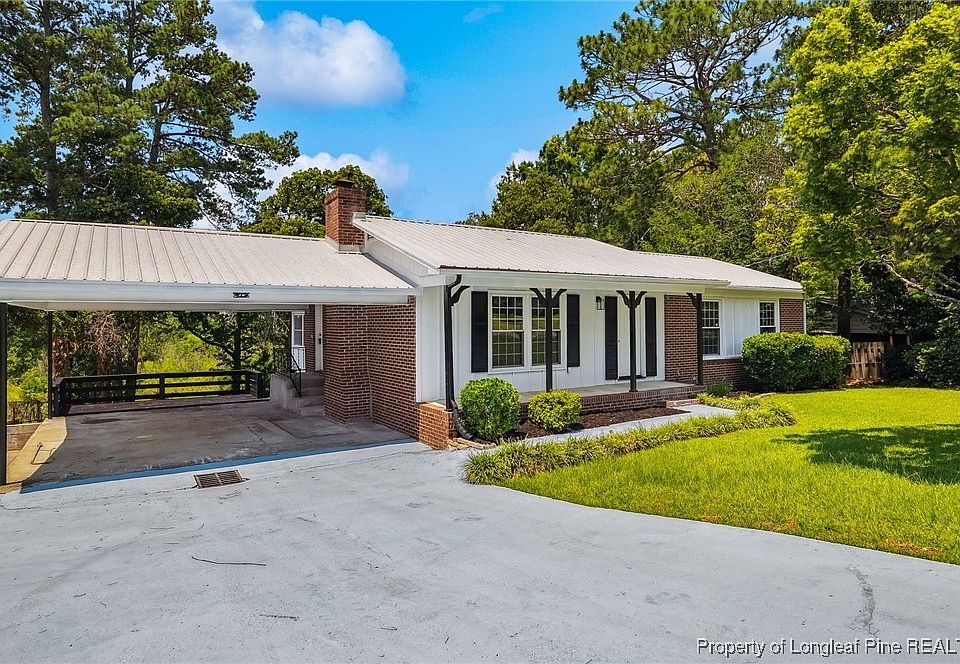 Your search for space, style, and convenience is over! This beautifully renovated 4 bedroom, 3 bathroom home features all new laminate flooring, new LVT in the bathrooms, new carpet in the bedrooms, a metal roof, and fresh paint throughout. The updated kitchen offers all new cabinets, new tile backsplash, new sink, granite countertops, and all new stainless steel appliances. Upstairs are 3 bedrooms, 2 full bathrooms, an eat-in kitchen, sunroom, and living area. Downstairs in the walk-out basement is a complete finished guest suite with bedroom, wood-burning fireplace, built-in bookshelves, full bathroom, laundry room, and an unfinished area with tons of storage space. The property also has an attached 2 car carport and a fully fenced in yard. Located in established neighborhood 10 minutes from I-295 and 15 minutes from base. Schedule your showing today!