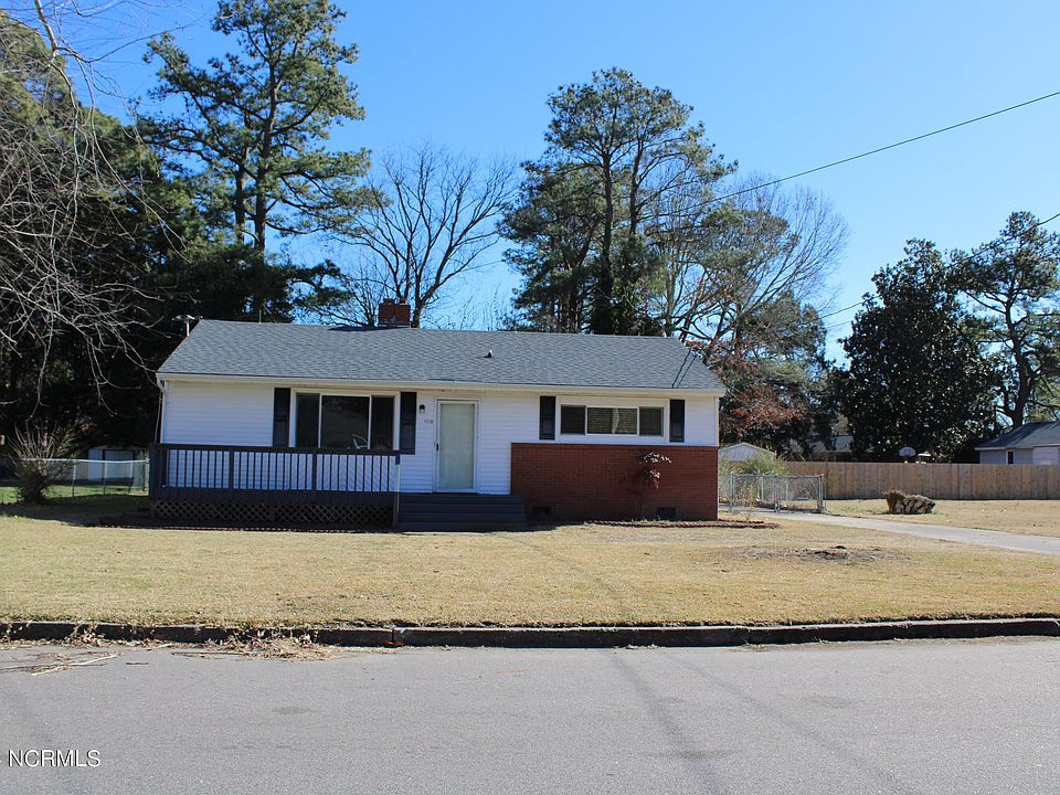 Inviting 3-bedroom residence featuring a warm wood fireplace for cozy evenings, hardwood floors, a nicely equipped kitchen, and a versatile flex room that can adapt to your needs. Enjoy the convenience of an attached garage, a sprawling fenced in backyard with fruit trees, grape vines, and handy shed with a new roof for additional storage or projects,. This move-in-ready home offers both comfort and functionality. Close to shopping and ECSU.