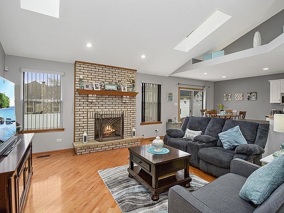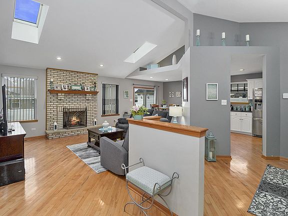 This is it! Move in ready former model 4 bedroom/3 bath Plainfield ranch with finished basement. Light and bright with volume ceilings and skylights, 6 panel doors and extensive hardwood flooring throughout. This home offers a layout that is open while still maintaining a cozy feel. Beautiful kitchen featuring abundant white cabinetry, upgraded SS appliances, breakfast bar and eating area that flows to the living room with brick fireplace and separate dining space. Large main level laundry room. 3 bedrooms including master suite with WI closet and private bath and recently renovated full bath complete the first floor. You will love the finished basement with family room, kitchenette, sitting area, 4th bedroom, full bathroom and tons of storage which offers a great expansion of the functional square footage and also related living possibilities. Nicely landscaped yard with patio, pvc privacy fence, shed and whole house generator. Many recent upgrades and updates including water heater, appliances, water softener, sump pumps, fixtures and newer roof, gutters, fence, driveway, furnace, air conditioning and more. All this is a fantastic location close to all conveniences. Plainfield schools. Make your appointment today!