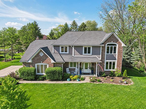 Nestled in one of Carmel's most desirable neighborhoods, this meticulously maintained home offers timeless elegance, superior landscaping, and access to top-rated schools. The inviting entry showcases rich woodwork, ornate dentil molding, and 9-foot ceilings throughout the main level. A formal living room filled with natural light from large southern-facing windows flows seamlessly into a tray-ceilinged dining room. The spacious kitchen and pantry seamlessly flows into the family room and to the screen in porch/outdoors-perfect for everyday living or entertaining. The adjacent family room exudes warmth with a brick, raised-hearth gas fireplace, exposed wood beams, and custom built-ins. Upstairs, the luxurious owner's suite boasts a cathedral ceiling and a spa-like jetted bath, comfort-height double vanity, and new custom tiled shower. Generously sized secondary bedrooms and a versatile storage room offer space for everyone. The finished basement provides ideal recreation, media space, and an office. Enjoy outdoor living on the screened porch, paver patio, and over 1/3-acre lot with impeccable landscaping. Springmill Ponds residents enjoy premium amenities, including a pool, tennis and basketball courts, and a playground. This is truly a move-in ready home in a premier location-welcome home!