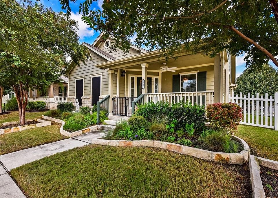 IMMACULATE home! LOW TAXES!!! This beautiful craftsman style home on a grand corner lot is in the desirable Turtle Creek Village. Well maintained with white picket fences and charming covered front and back porches and deck to enjoy your morning coffee. Wood flooring. Sprinkler System, Decks! Very convenient to Austin, grocery stores and retail shopping! Local community pool, playground and walking/jogging trails within the neighborhood. Over $25,000 in Improvements! Too many upgrades to mention!