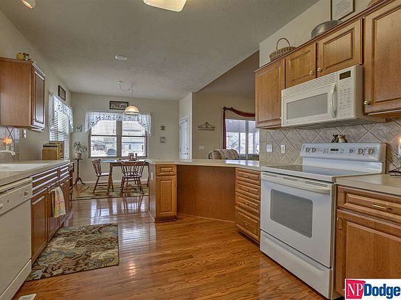 Teri Dennhardt, M: (402) 669-0545, tdennhardt@npdodge.com, www.tdennhardt.com - Former model. B/I speakers & security system. Sunroom. Spacious rooms. Kit has tile backsplash, hardwood flr, birch cabinets & ample amount cabinets & counter space. Dining area overlooks beautiful landscaped backyard fully fenced with white vinyl fence w/gate to walking path. Level yard w/sprinkler system. Master suite has dbl sinks, w/i closet & full bath/whirlpool. Convenient location to park, shopping & lake. Egress window & frame work ready for 3rd BR & full bath rough in.