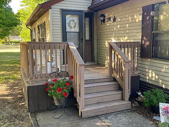 Well-maintained mobile home on 50x100 lot in great location. Boasts 2 bedrooms and 2 baths, along with 2-car detached garage which is perfect for your boat or UTV. Cathedral ceilings in living and dining rooms, as well as the kitchen, give this a large, open feel. Has sturdy deck with room for a patio set or grill. Includes refrigerator, stove, water softener, and washer & dryer that transfer with the property. Close to restaurants, shopping, the Mississippi River, and the biking/walking trail borders this property! Make this one your perfect starter, weekend, or retirement home.