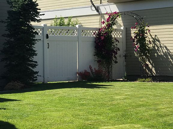 Unexpected quality throughout convenient walk-able neighborhood close to shopping,and park. This beautiful home has nine foot ceilings, crown molding, an office/sun room. Two full bathrooms each having a skylight. Main bath has a jetted tub master bath has a large shower. Master bedroom has a walking closet. There's a 3rd skylight in bed room #2. This room has 2 large lighted closets. Enjoy cooking in the lovely kitchen equipped with granite counter-tops, High-Grade Cabinets with soft close. The backyard is completely fenced and a new stamp patio adding over 400 sq ft to living space. Sprinkle system on a timer. Convenience of gas heating, hot water tank, fire place, gas piped to kitchen stove and to BBQ. Central air conditioning. Very open concept-living room-dinning room and kitchen, Living room and dinning room have plantation shutters Speakers in ceiling in living room-dinning room-kitchen and on back patio Newly added electrical outlet at both the front and back of house.