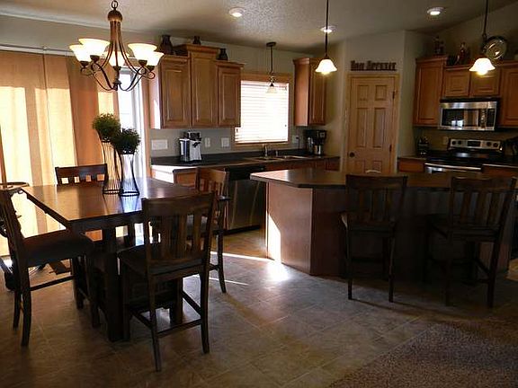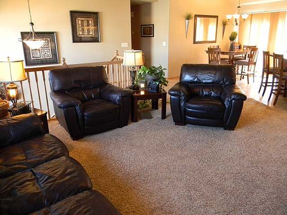 More square footage than the average town home! This one-owner home has been well maintained. Enjoy the open floor plan on the main floor with a vaulted ceiling over the Living Room, Kitchen, and Dining Room. Kitchen features a large island, corner pantry, and stainless steel appliances. Walk out onto the patio from the Dining Room. Three of the bedrooms are close together on the main floor. Master suite has a 3/4 bathroom and a walk-in closet. Downstairs, you will find a family room, extra bedroom, full bath, and large laundry room. Washer and dryer are included in this home. The oversized 2-stall garage has an extra storage room towards the back. Garage has a heater, floor drain, and water. Garage shelving and work bench does stay with the home. Call for a showing today!