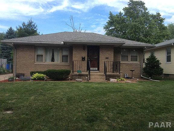 Location! Location! Charming 2 bedroom all brick ranch located within walking distance to Pekin Park Sports Complex and schools! The spacious & bright living room offers cove ceilings, large picture window and new floors '20. Beautiful eat-in kitchen has great cabinet storage. The hall leading to the bedrooms has new carpet '20 and 2 closets. Recently updated bath with granite counter & faucets and has built-in drawers and cabinet. The 2 bedrooms both have hardwood floors. The basement has epoxy floor and houses the laundry and bath with shower. Don't miss the 2 car garage with gas & water lines available. The updated patio & fenced yard are perfect for those backyard cookouts! This one won't last long!