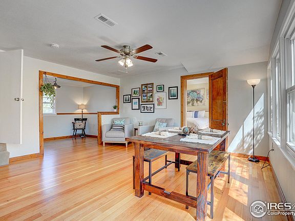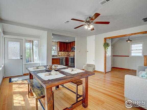 Charming home in desirable Bohn Farm Neighborhood. Updated 2 bedroom, 2 bath with large windows, wood floors and classic detailing. Great room with den/dining area. Main floor primary bedroom has sliding door to outside, upgraded bathroom and walk-in closet with laundry. Fully fenced backyard with two patio areas and storage shed. Walk to Sunset golf course, Walton Nature Center and downtown.