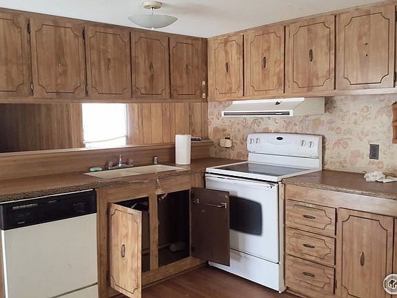 Investor special! Loads of opportunity to make improvements and add value. Home in a great location and in 55+ community. Good layout and a spacious kitchen area with loads of cabinets. All appliances onsite are included. Roof is leaking and in need of repair. Some ceiling material has collapsed into floor. Home may also have some mold. Opportunity to pick up a cheap home, make the repairs and add personal touches to make it your own. Motivated seller, make offer!