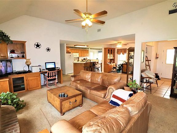 PRICE REDUCED!!! Great hill top home in the country! Beautiful Views!! 3/2/2 brick home on 25 Acres with barn apartment. Main house has open floor plan w/ fire place. Large master bedroom and master bath w/ walk in closet. Island kitchen and breakfast area. Outside sitting area on patio. $500 a month income on 1100 sq ft 2/1 apartment w/ CHA. Barn has covered parking, hay storage and horse runs. Ag Exempt. Lots of wild life!