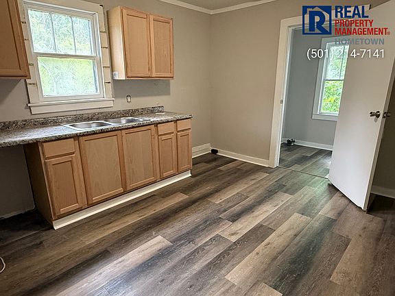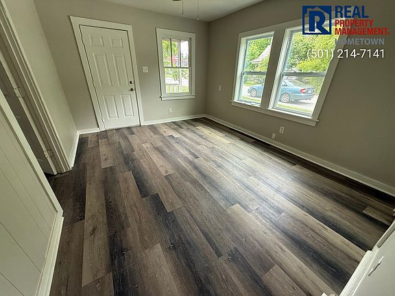 This 2-bedroom, 1-bath home in North Little Rock features wood-look flooring throughout and neutral-colored walls for a clean, modern feel. The living spaces are bright with natural light from multiple windows. The kitchen includes wood cabinets, a dual sink, and Dishwasher, Refrigerator, and Stove/Oven to be installed upon deposit being placed. There's a dedicated laundry area with washer/dryer connections. The bathroom is updated with a white vanity, toilet, and tub/shower combo. Outside, the home has a small front porch and sits on a spacious lot with a grassy yard. Rent $700/mo, $700 security deposit and $150 admin fee. $30 a month for Resident Benefits package Liability to Landlord Insurance is Required. Pet Policy: Small dogs allowed upon approval $350 non-refundable deposit and $35 a month for pet rent. No section 8. Applications are submitted on our website. Requirements and qualifications can be reviewed from our website before completing application. Each adult must complete a full and separate application. Application fee of $50/adult also paid on the website. Front Porch No Utilities Included
