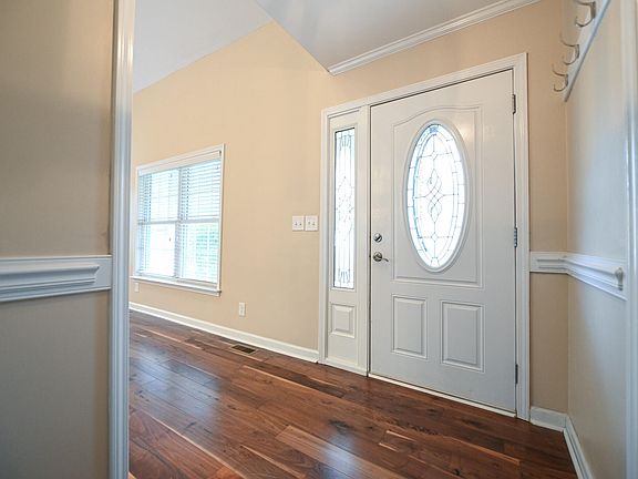Welcome to this beautifully updated 3-bedroom, 2-bath ranch-style home, where modern elegance meets classic charm. As you step inside, you're greeted by a stunning stone fireplace, soaring vaulted ceilings and lovely hardwood floors that flow seamlessly throughout the entire home. The heart of the home is the recently remodeled kitchen, featuring rich cherry cabinets, gleaming granite countertops, and stainless steel appliances—perfect for both everyday meals and entertaining. The spacious primary suite is a true retreat, offering a tray ceiling, a bright bay window, and an ensuite bath with a luxurious jetted tub, tile surround, dual sinks, and a walk-in closet with a convenient pass-through window leading directly to the laundry room. Two additional bedrooms are down the hall. One bedroom offers a cozy window seat and built-in shelving, adding character and charm to the space. The hall bath is equally impressive, with a beautifully tiled walk-in shower and a sleek, modern vessel sink. Step outside onto the large deck that overlooks the fully fenced backyard—ideal for relaxing or hosting outdoor gatherings. This home is truly a must-see—beautifully designed with attention to detail and move-in ready.