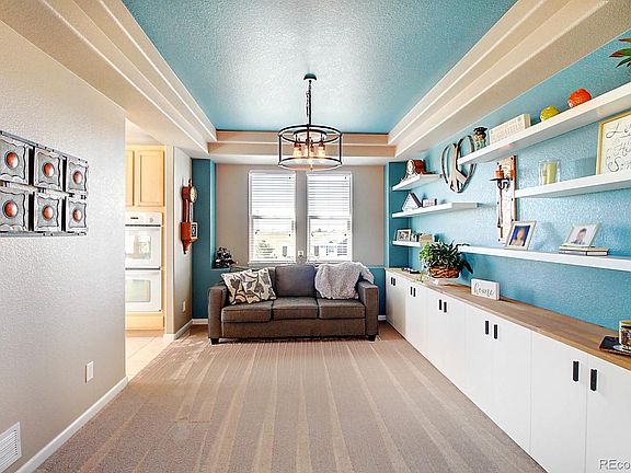 BREATHTAKING MOUNTAIN VIEWS!! Must see!! Beautiful single-family, 4 Bedroom home in desirable Silver Springs subdivision of Todd Creek Farms! 3-car garage + shed w/ drive-through doors. Foyer welcomes you to spacious open floor plan with vaulted ceiling, and lots of windows bathing the home in natural light! Main level has formal Dining Room with built in shelves and cabinets, Great Room with gas fireplace and built-in entertainment center, and bright eat-in Kitchen. Kitchen features granite-slab countertops, new bright white appliances with double oven, and center island/breakfast bar with seating and storage! Main level bedroom would make a great study or playroom. Upstairs bedrooms offer stunning view of the Mountain Range--A MUST SEE! Master Bedroom features private 5-piece bathroom with oversized tub and big walk-in closet with window! Unfinshed basement with high ceiling is ready for your personal touch! Stunning corner lot of land with, large fenced yard with deck and flagstone patio, lots of room for kids and pets to run and play, while you relax with friends and family! Play set is included! New carpet April 2020, new roof (transferable warranty) November 2018, new hot water heater Aug 2018.