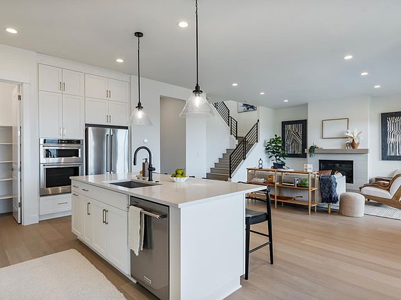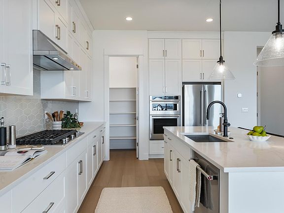 With an idyllic blend of comfort and elegance, this quick move-in home perfectly fits your lifestyle. Complementing the well-designed kitchen is an immense center island with a breakfast bar as well as plenty of counter and cabinet space and a sizable walk-in pantry. The kitchen features white shaker-style cabinets extended to the ceiling with convenient features like a trash/recycling pullout and soft-close doors and drawers. As the centerpiece of the home, the open-concept great room is highlighted by gorgeous luxury vinyl plank floors and convenient access to the covered outdoor deck with a stunning stacked white stone fireplace. The appealing primary bedroom suite boasts a lavish free-standing soaking tub, dual sinks with white-veined quartz countertops, and ample closet space. Central to a generous loft space, secondary bedrooms feature sizable closets and a shared hall bath with a dual-sink vanity. Bedroom 4 has an additional en-suite bathroom. The finished basement creates space for a media room or office space the possibilities are endless. Designer finishes in this home total over $123,000. Don't miss this opportunity call today to schedule an appointment! Disclaimer: Photos are images only and should not be relied upon to confirm applicable features.