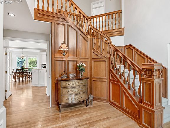 Enjoy the pinnacle of luxury in the coveted Bethany area of Portland! This stunning 4 bedroom, 3.5 bath home is a masterpiece. Set on a rare .54-acre lot, this home is the perfect blend of style and sophistication, boasting exquisite details at every turn.Enter the foyer and you are greeted by a beautiful staircase that will leave you in awe. The hardwood floors, vaulted ceilings, and crown molding are just a few of the luxurious features that make this home stand out from the rest. The ground level executive office, with custom built-ins, is the perfect space to work from home or conduct business. The large bonus/TV room has unique soaring vaults, Bose speaker system, and provides the perfect space for entertaining or relaxing. A 2nd private office with built-in shelving and storage, is perfect for others working from home.The meticulous landscaping, with waterfalls and shallow pond, will transport you to your own private oasis. Imagine sipping your morning beverage, relaxing in your peaceful and tranquil sanctuary or hosting summer barbecues on the expansive patio, which is perfect for entertaining. Each outdoor space is unique. From the custom designed pergola with swing and firepit to the pathways through the trees, this property is stunning!This home features not one, but three fireplaces, creating a cozy ambiance in any season. The house has a Jack and Jill bathroom. The new interior and exterior paint, new roof, and new driveway make this home move-in ready. The deep three-car garage provides ample storage for vehicles, equipment, and tools. And, if you're looking for investment opportunities, this property is zoned R-6 for possible development, making it a smart long-term investment.This stunning home is situated at the end of the street, providing privacy and seclusion. Don't miss the opportunity to make this one-of-a-kind masterpiece your forever home. Schedule a tour today!