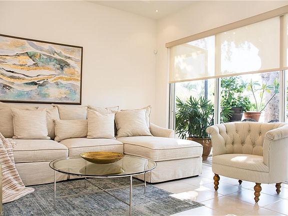 Perfectly nestled in Stella Del Mar, a Water's Edge community , you have privacy combined with pure outdoor paradise and access to a communal boat launch, private beach, 600' fishing pier, wet/dry slips and marina socials. Welcome to a home of genuine comfort and interior coastal personality! This 2/2 villa townhome is light, bright and spacious with 2207' total sqft. The master suite is generously proportioned with dual walk in closets and double vanity. You'll find desirable plantation shutters and volume tray ceilings along with upgraded stainless appliances. You enter the home through a spacious screened entry and recessed lit foyer second only to the naturally illuminated living area! You'll find the brick paver open air lanai is just off the living room and surrounded by shade and nature. Laundry in residence with plenty of cabinets and storage. You'll always feel safe in this home as its in a highly sought after gated community and area. The pool is only steps away for those hot summer days and tennis is close by too. The beaches of Sanibel and Ft Myers, shopping and airport are only a short drive as well. So many amenities you can't find many other places and affordably.