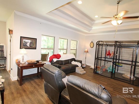This is a beautiful brick home in a well kept quiet neighborhood conveniently located in the Foley area. the back yard is surrounded by a wooded area for quiet relaxation on a roomy back deck. The open concept is perfect for entertaining. The primary Bedroom and bath is designed for comfort with a large walk-in closet. Buyer to verify all information during due diligence.