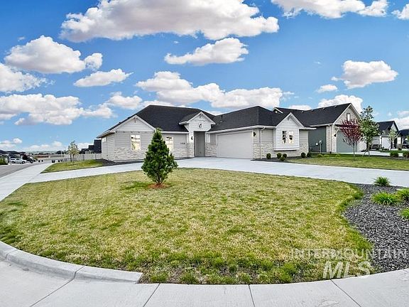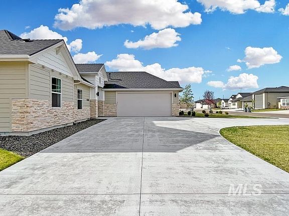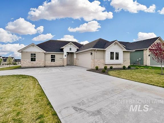 Welcome to the highly sought-after Sienna Hills community. Chateau Builders brilliantly situates THE COTTAGE 2 on corner lot with view of the Boise Mtns. You'll enjoy the natural light-filled living room with fireplace featuring a shiplap floor-to-ceiling surround, a bright kitchen with stainless steel appliances, quartz countertop, custom backsplash and floating shelves. Wood floors through the entrance into kitchen and dining areas add elegance and warmth. Enjoy the views from the gorgeous owner's suite with bay windows, french doors, private en suite and walk-in closet. Dual vanity with quartz countertops and walk-in tiled shower with built-in bench. Oversized 2-car garage, full landscaping including U/G timed sprinklers and a fantastic large covered patio for entertaining and enjoying the outdoors. Keep active or find solitude as the lifestyle amenities flourish with a community clubhouse, pool, tennis & basketball courts, vineyards, and peaceful walking paths. Don't miss out!