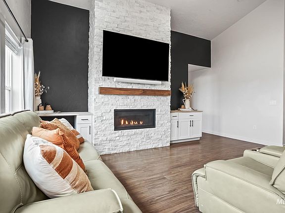 BETTER THAN NEW! single level home with SO many upgrades!!! If you would like a newer home with ALL of the upgrades completed, look no further! From the additional driveway/parking pad, RV parking, heat/cooled garage to the above ground pool in the back, and all upgrades in between like the custom floor to ceiling stone fireplace wall and upgraded heating and air unit with air cleaner, this house has so many thoughtful upgrades! Almost all interior builder grade finishes have been upgraded! From the flooring all the way up to the light fixtures! NO BACK NEIGHBORS and new sod was just laid! Enjoy the above ground pool in its own enclosed area for safety! Located in a great Nampa location near the freeway for an easy commute! ASK YOUR AGENT FOR THE FULL PAGE AMENITIES LIST TODAY! This home comes with a 1 year home warranty!