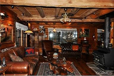 Beautiful log home on almost 10 acres with a year round creek flowing through property. Home is both beautiful in design with loads of curb appeal, and offers many benefits of modern style and elegance, along with character and charm. The wood brings a sense of security, and serenity and certainly an obvious choice for those who appreciate nature and a home that fits naturally into the surroundings. Log homes are extremely energy efficient homes because of their solid wood construction. They keep heat it during the winter months, and during the summer month keep heat out. Because of they are constructed of solid logs, they make an efficient sound barrier from the exterior, and also from the inside, from room to room. Wood breathes and absorbs water vapor during humid conditions and releases it in dry conditions. Features include 2 septic systems and 2 wells, room to build a granny house, Partial dual panes w/warranty, hardwood floors, wood and pellet stoves, giant master suite, bonus loft room, additional sun porch, and charming outbuildings reminiscent of old western town-saloon,assay office, jail and even a white chapel with bell. Year round creek, too much to say in words...A MUST SEE IN PERSON to appreciate. Horses-Lamas welcome. Virtual Tour Link http://idx.imprev.net/2C7E13FA/54/1254/16356/index.ipv