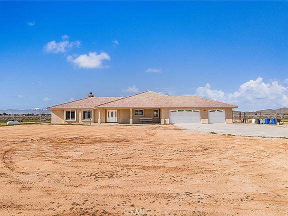 CUSTOM TURNKEY ONE STORY, MOUNTAIN VIEWS, LOW UTILITY COSTS, AND NO NEIGHBORS... A beautifully maintained single-story home that has true pride of ownership, offering endless privacy, and space. Located on a giant 38,895 sq ft lot. Featuring 4 bedrooms, 2.5 baths, 2,259 sq ft of true living space, and fresh interior and exterior paint. Have control over your utility bills with well water, propane gas, and septic, this property delivers lower monthly overhead, more control, and wide-open living. This move-in-ready home showcases a open concept floor plan with high ceilings, dual-pane windows, and a tasteful blend of tile and fresh carpet throughout. The light-filled living room opens to an entertainer-friendly layout, while the open kitchen features recessed lighting, abundant cabinetry, a large peninsula and center island that is equipped with stainless steel appliances, a walk-in pantry, and an adjoining dining area. The family room connects seamlessly to the kitchen and includes a wood-burning fireplace, direct patio access, and a nearby guest bath—ideal for hosting. All four bedrooms are well sized, with a large private primary suite offering an additional room off of the primary mountain views, a large walk-in closet, and a spa-style bath with dual sinks, soaking tub, glass-enclosed shower, and private commode. Additional highlights include a dedicated laundry room, covered patio with ceiling fans, white picket fence enclosure with lush grass, oversized concrete driveway, and a finished 3-car direct-access garage with ample off-street parking. Enjoy peaceful desert living with no neighbors, panoramic views, and room for all your vehicles, toys, or future plans—just minutes from shopping and dining. This is Apple Valley living at its best: clean, efficient, spacious, and truly turnkey.