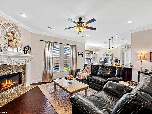 Immaculate DSLD home in the Woodmont community! Woodmont is centrally located and is minutes from Foley schools, the hospital, and the white sandy beaches. The upgrades to this home really separate it from the others in this neighborhood! Granite counter tops with under-mount sinks in the kitchen and bathrooms, crown molding, recessed lighting, and well maintained landscaping. The kitchen is equipped with stainless appliances and a custom stone backsplash. The living area features beautiful wood flooring and a woodburning fireplace with a decorative mantle. Spacious master suite with 2 walk in closets, a garden soaking tub, and separate shower. Other features include a new privacy fence and double garage.