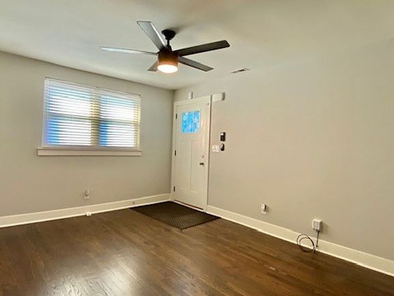 Super clean 2 bedrooms, 1 bathroom townhome in quiet neighborhood. Home is furnished with high end appliances (stove/oven, microwave, dishwasher, refrigerator, garbage disposal, washer/dryer), granite countertops, deep kitchen sink. Ceiling fan with light in both bedrooms and living room. Hardwood & tile floor throughout the home. AT&T and Comcast Cable ready. Reserved off-street parking space in well lit parking lot at back of the unit. HVAC maintenance, Pest Control, Lawn maintenance and HOA fees are included in rent.