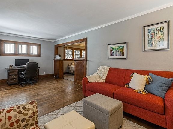 Adorable brick bungalow with original craftsman character thru- out including hardwood floors and built-ins. With over 1000 sq ft you'll find surprisingly spacious living spaces inside. Formal living room with fireplace (currently used as aesthetic only) is large enough to accommodate a home office space and the formal dining room is a great flex space (currently used as family room/den). Character continues into the kitchen with the charming breakfast nook, farmhouse sink and painted cabinets-- all appliances included - check out that fridge! Private patio spaces perfect for outdoor dining and an oversized garage makes this the whole package! Plus, with walking distance to the Knapp Center, the updated Drake stadium, the Varsity theater and plenty of other local dining and shopping options this truly is a great find for the price. Ask your Realtor about info on home improvement grants you may qualify for!