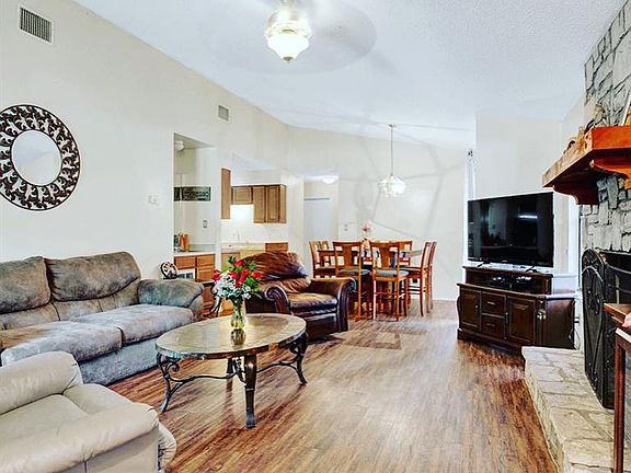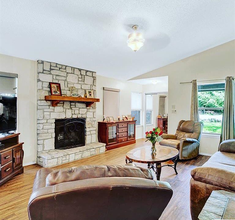 Excellent investment property or place to call home MINUTES FROM TEXAS STATE UNIVERSITY! Walk in to an open living and eating area complete with wet bar and fireplace. Kitchen includes dishwasher, stove and plenty of cabinet space. Three bedrooms are located in the rear of the home with a large master suite. Master bath with two vanity sinks and plenty of space. The large size lot complete with mature trees and garden area. Call today! This one is a STEAL!