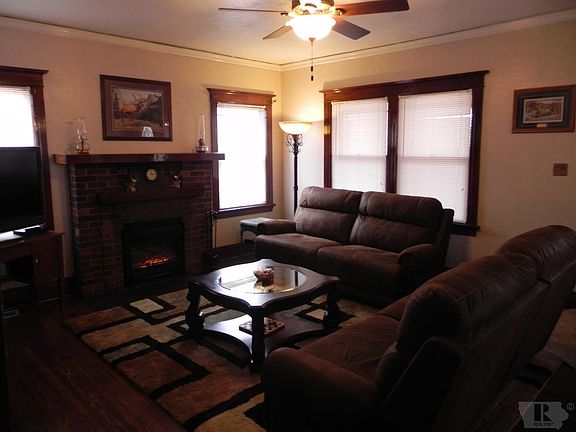 Historic charmer: this all brick 4 bedroom, 2 bath boasts numerous updates: NEW bathrooms, tile, carpet, water heater, beautiful front door and much more! Character abounds in the gorgeous woodwork, hardwood floors, ornate fireplace and quaint front porch. Situated on an extra large lot, the barn and two-car garage, cherry tree, and strawberry patch make this one the perfect choice for your new home! PRICE REDUCED!