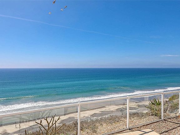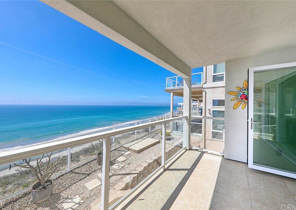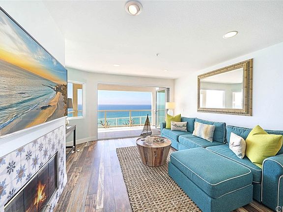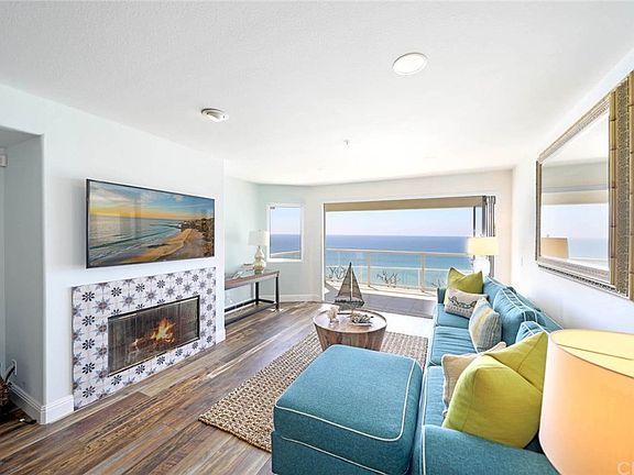 Ocean Front Luxury with a Wall of Glass bringing the sun kissed ocean and sound of waves into this light and bright living space with a covered spacious balcony. Freshly remodeled and feels like new, this 2 bedroom, 2 bath condo has stunning newer flooring, fresh paint, white cabinetry with granite countertops, glass tile backsplash, stainless appliances, newer glass folding doors, plantation shutters and two cozy fireplaces capturing the casual San Clemente beach lifestyle. The condo features two generously sized master bedrooms with ensuite full baths and extra large walk in closets, Air Conditioning, inside laundry, a large private storage room, and front and back access to the 1662 sq. ft. unit . The secured entry building has updated paint, newer contemporary garage doors, an outdoor shower, a common viewing area and glass fencing opening the panoramic views of waves, surfers, dolphins, Catalina Island, Dana Point, City Lights and breathtaking sunsets. Conveniently located steps away to the beach access, beach trail, train, new North Beach retail shops & restaurants coming soon, downtown San Clemente, Farmers Market, Art Faires, Ocean Festivals, the Outlet Mall, PCH and frwy access. Washer, Dryer and Refrigerator are included. Priced to sell. It's stunning.