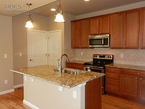 See Broker's Remarks! Beautiful new home in Collins Park lived in only 6 months! Has open & light floor plan w/slab granite counters in kitchen & upstairs bathrooms, stainless steel appliances, maple cabinets, kitchen island w/breakfast bar, wood floor, upgraded carpet & gas fireplace. Large patio off living room w/fully fenced yard. 3 BR, 3 BA, A/C, 3 car garage, large unfinished basement w/rough in, low HOA, close to park and shows like new!