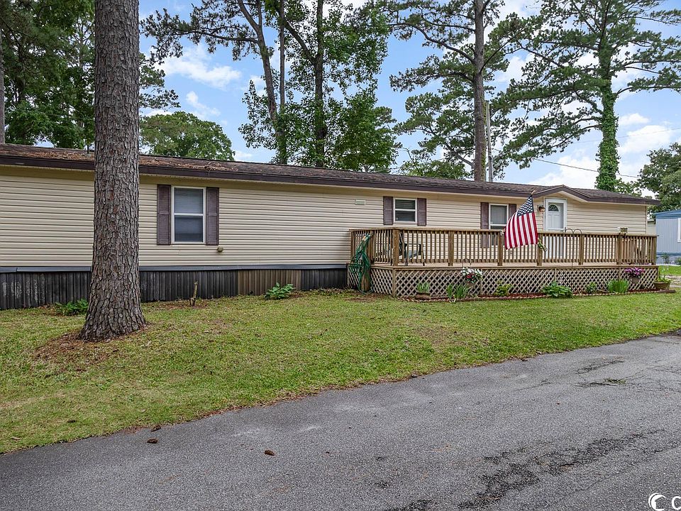 Wonderful updated home with lake view! Sellers have lovingly cared for this 2 bedroom, 2 bath home. Lots of updates including new drywall, new sub-flooring, all new light fixtures, ceiling fans, 6 panel doors, new luxury vinyl flooring throughout and all appliances are like new. Open floor plan with vaulted ceilings. Large owners suite with walk in closet. Welcoming large front porch and 12'x26' back deck with 24ft awning provides extra outdoor living space. Storage Shed and Fenced yard, 3 ton HVAC unit and water heater are new within the last 5 years. Short Golf Cart ride to the Ocean, Centrally located close drive to Myrtle Beach State Park, Coastal Grand Mall, Airport, Market Commons and local shopping.