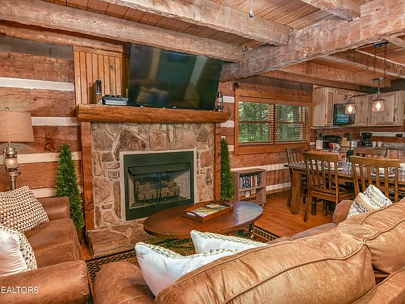 The perfect quintessential Smoky Mountains Cabin. Located in the Hidden Mountain area of Sevierville and close to all the attractions in Pigeon Forge, this is the ideal STR cabin. Featuring 4 bedrooms, enclosed porch with Hot Tub, Firepit area, gas fireplace and all the usual amenities you want. Set up to be very efficient and stays booked. Families love the comfort and convenience of the location. Turnkey and ready to rent with no HOA. Upgrades: New Hot Water Heater, Fire Pit and flooring on main level in 2020. new roof on back porch in 2021, Water filtration system and new shower upstairs in 2023. 2 Arcade games added to one of the upstairs bedrooms in 2024.