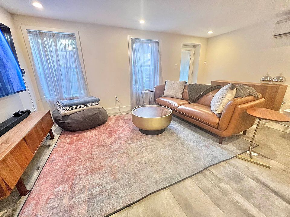Stunning Duplex With a private backyard in a pristine Crown Heights townhouse Super spacious apartment featuring: Super spacious and open concept kitchen/living/dining room Modern kitchen with kitchen island All new stainless steel appliances including dishwasher Hardwood floors Central AC Washer dryer in unit One large king size bedrooms and 2 queen sized bedrooms 1.5 bathrooms