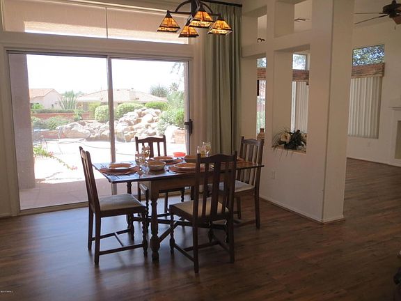 For more information on this property, contact the Listing Agent, Betty J. White at (520) 275-6654 or BWhite@LongRealty.com. ''Sunrise Plan'', 2 bdr, 2 baths; on a stunning corner lot; views of mountains & sunsets, professionally landscaped located on cul de sac. Kitchen has upgraded stainless appliances; Jenn-air oven & down draft range, Bosch dishwasher, tile counters, loads of storage, large pantry. Kitchen blends into breakfast area & family rm, very open; gas fireplace; rounded corners throughout. Entire wall in the living rm & dining rm is glass; sliding door looks onto a beautiful flagstone patio, waterfall & built in grill, raised planter, professionally landscape. Bdrm are very large, master bdrm has double doors; walk-in-shower, oval tub w/glass block window, walk-in closet. Laundry rm has counter, sink, cabinets, closet; garage has more storage, w/laundry hookups & sink.