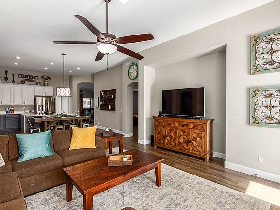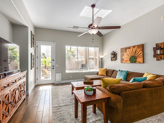 Welcome to a fabulous Chandler retreat featuring a unique Tiki-themed backyard oasis. Gather with family by the lagoon pool, sip drinks at the Tiki bar, or lounge by the outdoor fireplace. The backyard offers a BBQ, sun loungers, and an outdoor living room perfect for enjoying coffee at sunrise or wine at sunset. This coveted south-facing yard lets you bask in Arizona's warmth year-round. Inside, the open-concept design is ideal for entertaining, with a kitchen boasting a large island, breakfast bar, and everything needed for meals or BBQs. Relax in the comfy family room with a big screen TV or retreat to the luxurious master suite with a king bed, TV, and spa-inspired en-suite. On the east side, find two queen bedrooms, a twin room, and a shared hall bath with double sinks for convenience. Located just a mile from vibrant Downtown Chandler, enjoy world-class dining, trendy breweries, arts, and attractions like the San Marcos Golf Course and Chandler Museum. This home offers super-fast Wi-Fi, cable TV, a laundry room, and a two-car garage. The pool is unheated.
