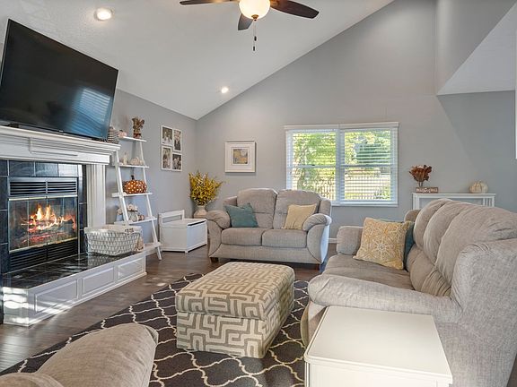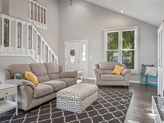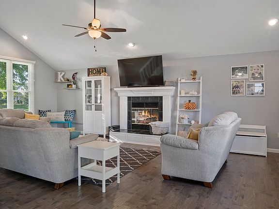 New to the market! This home has so many wonderful updates and is now ready for its new owners! The moment you walk through the front door you are greeted with gorgeous hardwood flooring, two story vaulted ceilings, a beautiful fireplace and so much natural light shining throughout. The main floor offers an open layout with a large family room and eat-in kitchen. The kitchen offers stainless steel appliances, a butcher block prep island and stunning granite counter tops. The main floor also features a half bath and laundry just off of the kitchen. All three bedrooms and two full baths are located on the second floor. The primary bedroom has vaulted ceilings and an ensuite bath that includes double vanity sink and a glassed shower. Full finished basement with a large family room, extra carpeted area for kids play and another half bath. Step out the sliding doors from the kitchen to the back deck and large fenced in yard! Oversized 2 car garage with plenty of extra storage shelving and a work bench. The home is located in a wonderful neighborhood near parks, trails and your everyday shopping. Updates to this home include: Garage door and opener '22. Front yard landscaping '22. Furnace and AC '21. Carpeted stairs, basement flooring, granite counter tops, kitchen sink, front windows, sliding glass door and sump pump all in 2020. Bedroom ceiling fans '19. Hot water heater '18. Window treatments '17. Roof '16.