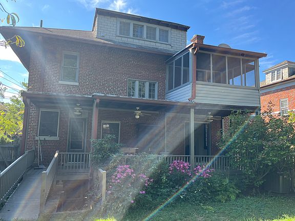 This beautiful residence is a fine example of classic American Foursquare architecture. Upon entry, you are greeted by a large central hall and a beautiful staircase. The main level of the home maintains a traditional layout to include a formal dining room, living room, and kitchen. The bright dining room can accommodate a table for 8+. The large living room features picture windows and French doors that lead onto the covered rear porch. The updated kitchen can easily be accessed from either the main hall, dining room or rear hallway, and features stainless steel appliances, solid wood cabinetry, and granite counters. The large rear deck and fenced backyard, which features plum, apple, fig, pear, sour cherry, and peach fruit trees, can also be accessed from the kitchen.