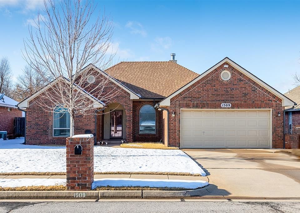You won't find a nicer home in Edmond under $300K than this one. Totally remodeled inside, granite in kitchen with center island, stainless steel appliances, new faucets through out the home. New flooring through out. Separate walk in pantry. Separate dining area with great view of outside. Large living with high ceilings, gas logs fireplace with ceiling fan. Master suite is huge with double vanities, separate shower and tub. Other 2 bedrooms on the other side of home are large with great sized closets and ceiling fans. New paint through the home. Roof, Heat and air, sprayed in additional insulation, hot water tank, new duct work all new 2022 and 2023. New windows through out. Water softner in garage 2019. Gutters all around the home, outside building too. Extended driveway on the north side. Seller reserves all curtains, rods and TV and TV mounts.