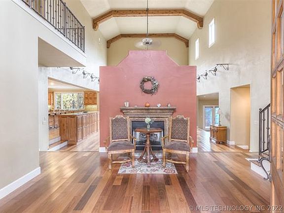 Seller will consider a Lease/PURCHASE with acceptable price & terms on this Custom built home in Lakeside Ridge on 6.47 heavily wooded acres sloping down hill to the east in the Osage Hills of Sand Springs. Close to downtown. Lots of Natural landscaping and wildlife. 28' soaring ceiling in Great Room & Front Grand entry. The IPE hardwood flooring in grand entry and Great Room is a Brazilian Walnut from South America that is VERY hard and naturally resistant to rot, abrasion and insects. Three pantries!!