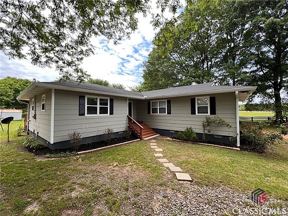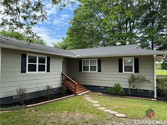 Come home to the country, Madison County country. This spacious ranch enjoys a peaceful 1.13 acre setting in beautiful Madison County, Georgia. Large oak trees line the lot, offering modest shade to the generous yard space in both the front and the back of the property. The home sits almost in the middle of the lot, with ample parking and two storage buildings. The exterior features of the home are more than accommodating. The widened front steps create a quaint entryway and small usable porch at the front of the home. Additionally an oversized back deck has a doorway into the kitchen or a French door entering the family room. Inside the home, the common areas are mostly open and include a family room, dining room and kitchen. All four bedrooms are on the same side of the home, with one being a primary bedroom with en suite. The home has mostly standard finishes other than a tile backsplash in the kitchen and the tubs in both bathrooms have tile surround. 1800 sq. is a great canvas for a little customization and creativity to make it your "HOME"