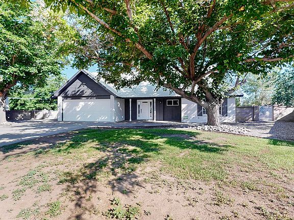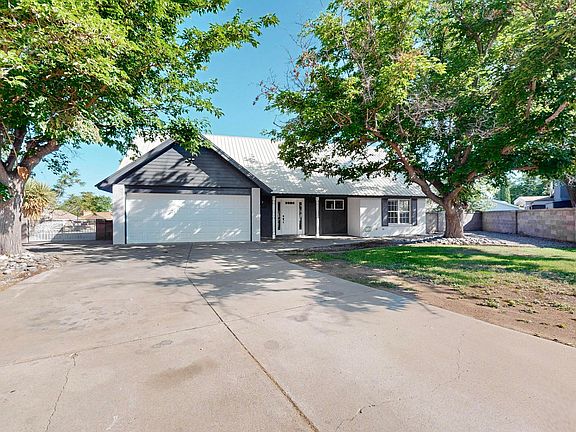 Discover refined elegance in this exquisite Albuquerque residence, where contemporary sophistication meets warmth and comfort. This impeccable four-bedroom, three-bathroom sanctuary has been meticulously transformed, offering a fresh canvas for your next chapter. Bask in the abundant natural light enhanced by tasteful recessed lighting, while new flooring and paint create an atmosphere of serene luxury. The kitchen--a culinary artist's dream--showcases sleek white cabinetry complemented by gleaming stainless steel appliances. Indulge in modernized bathrooms featuring streamlined shower experiences. Beyond the interior splendor, a generous covered patio overlooks an expansive backyard, perfect for both intimate gatherings and grand entertaining aspirations.