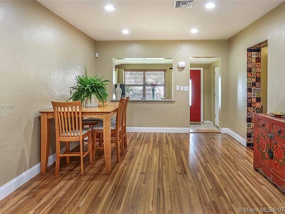 This home is a must see. A Beautiful bright & spacious updated 2 bedroom, 2 full bathroom home is a must see. IMPACT WINDOWS. It features updated kitchen with Stainless steal appliances, and real Dade County Pine hardwood floors throughout. The huge oversized lot is 9,382 SF with plenty of room for a pool, and is fully fenced in backyard with private Patio area. Patio furniture included. Fruit bearing Avocado tree. Both the Large Master bedroom and 2nd bedroom have large walk in closets. Roof 1 year, AC is 4 years old. Plumbing has been updated with PVC. 5 minute ride to the beach, Great location. Termite treatment in 2019. Step in showers in both fully updated bathrooms. Fire hydrant in garden & Budha head & stained glass window not included.
