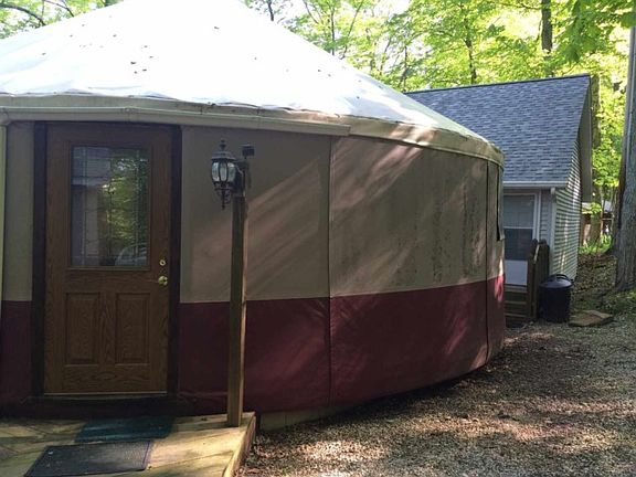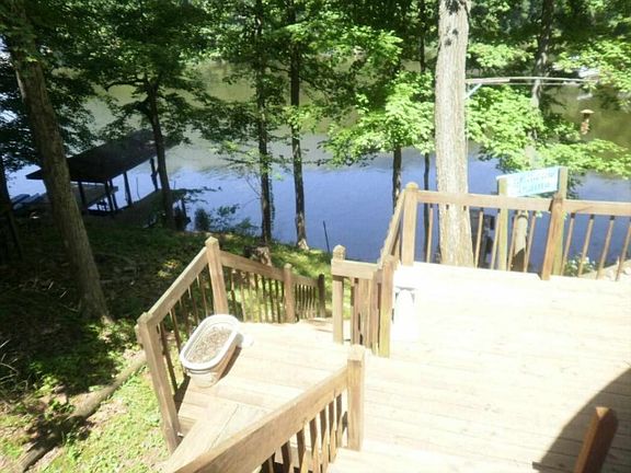 This 30' diameter Yurt is the gathering room with lake view windows, woodburning stove, full kitchen and dining room. Has a sky light dome for plenty of natural light on this shaded lot. The 24' x 28' addition houses the bedrooms, laundry and bath. Quite a unique home with central heat and air. Outside the Multi level Decks make for a fun home year round to Enjoy the Lake view and boat dock on a quiet cove. Two Bedrooms plus a loft for the extra young at heart guests. This offering is for the improvements on this rented lot on the Beaver lake shore.