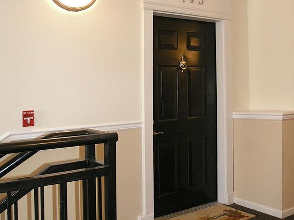 Cheerful entry level unit with no stairs, yet up on level with balcony/deck overlooking trees & common area! Spacious unit with 2 bed & 2 full baths. Gourmet kitchen with gas cooking, stainless appliances and granite counters. Full size washer and dryer. Well maintained. Reserve parking space #119. Walk to North Point Village Center:Giant, Starbucks, Restaurants! No smoking, dog case by case.